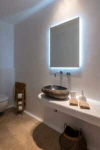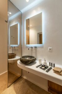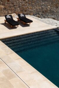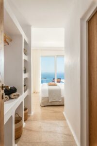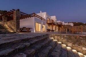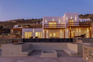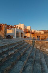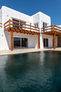 Η αρχιτεκτονική έχει έναν ξεχωριστό χαρακτήρα παραδοσιακής κυκλαδίτικης και μινιμαλιστικής κομψότητας, προσφέροντας πισίνα υπερχείλισης 48 τετραγωνικών μέτρων που περιβάλλεται από πλακόστρωτη βεράντα από αιγυπτιακό μάρμαρο. Τζακούζι 22 τετραγωνικών μέτρων και υπόγειο χαμάμ (ατμόλουτρο) με εμπειρία σαν σπήλαιο.