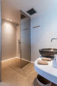 Συνδυάζοντας μοντέρνα και παραδοσιακή διακόσμηση, η διώροφη βίλα είναι διακοσμημένη σε μπεζ και λευκούς τόνους και διαθέτει πλήρως εξοπλισμένη κουζίνα με τραπεζαρία. Οι εγκαταστάσεις περιλαμβάνουν κλιματισμό, δωρεάν προϊόντα περιποίησης και στεγνωτήρα μαλλιών. Η βίλα διαθέτει 4 υπνοδωμάτια και 4 μπάνια, όλα με ιδιωτικό μπάνιο, και ένα WC για τους επισκέπτες.