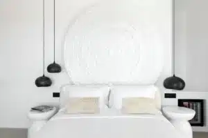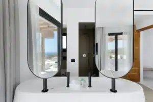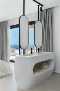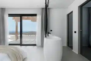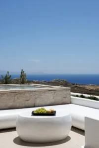 Bedrooms The Divine Suite is the crown jewel of our esteemed property. This exclusive retreat offers unparalleled amenities, including an outdoor hot tub with mesmerizing sea panoramas, where you can unwind and indulge in complete relaxation. Step into your private dining area, perfect for enjoying the fresh sea breeze. The Divine Suite boasts a private terrace with a 360-degree view of the sea, providing an unmatched landscape that will leave you in awe. Experience unparalleled luxury and comfort in this prestigious suite, where every detail has been meticulously crafted to ensure a remarkable stay.